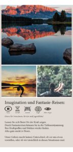 „Nur ein ruhendes Gewässer wird wieder klar“ Entspannungskurse für Jugendliche und Erwachsene in Geisingen und Umgebung Die heutige Zeit wird oft bestimmt durch Stress und Hektik im Alltag. Die Balance gerät dabei schnell aus dem Gleichgewicht.Dabei kommt die mentale und KörperlicheRegeneration zu kurz. Das hat zur Folge,dass wir unsere Ressourcen nicht mehroptimal nutzen können.Wir fühlen uns dann unsicher und sogarkrank. Mit professionellem Entspannungstrainingkönnen Sie lernen Ihren Körper und Geistwieder in Einklang zu bringen. Lernen Sie sich selbstständig und jederzeit in einenentspannten Zustand zu bringen und IhreRessourcen bestmöglich zu nutzen. Ihre Svenja Sicilia Flyer Seite 1 Flyer Seite 2 Sie haben Fragen? Bitte schreiben Sie mir oder rufen Sie mich an,gern stehe ich Ihnen bei allen Fragen zur Verfügung.